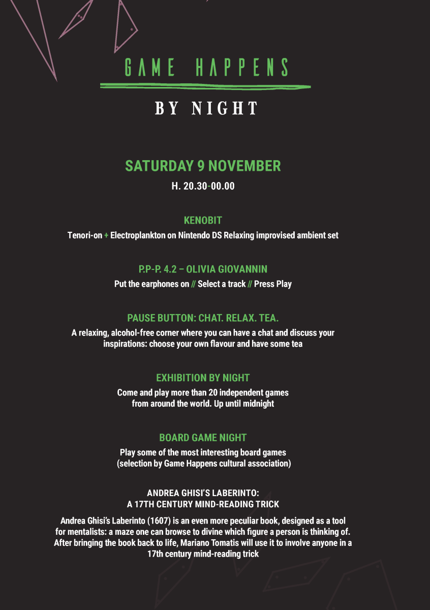 Come and play more than 30 independent games from around the world, with an esclusive VR experience inspired by the theater of Tadeusz Kantor.